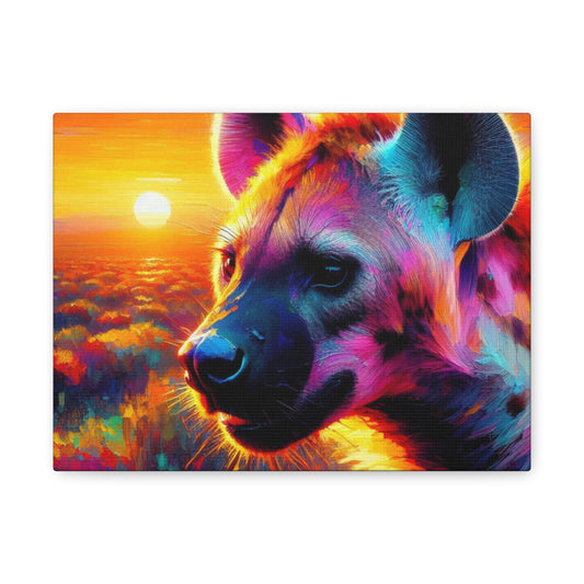Hyena at sunrise - Portrait , abstract Impressionism , bright and vibrant colors , Oil painting on canvas print , wall art ,
